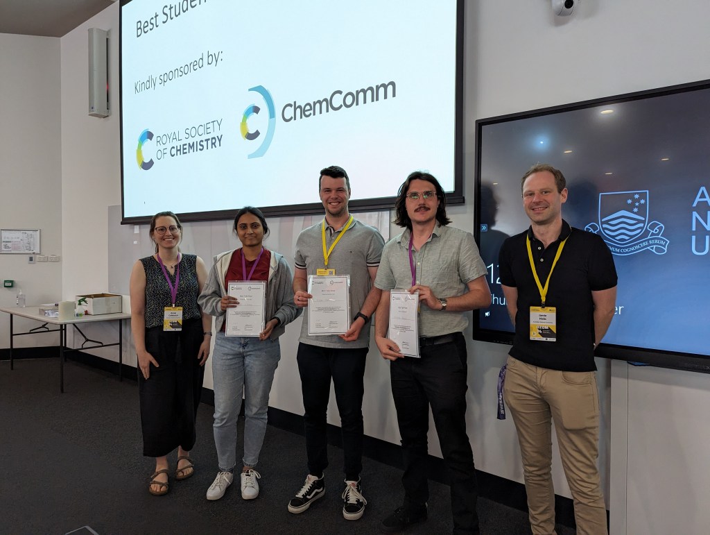 12/12/24 – Gareth and Fabi win poster prizes, and Emily wins the RACI Don Stranks Award. Great work from the group!
